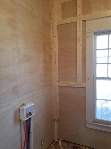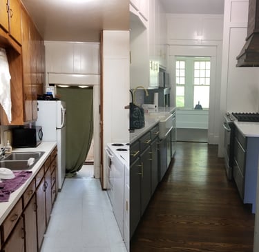 First, let me say this room was cramped! It is a very narrow galley kitchen and when we bought this property it also held the washer the dryer and the water heater! There is a little room off the kitchen that literally only had a corner pantry. Perfect space for the washer/dryer and the water heater, PERFECT.