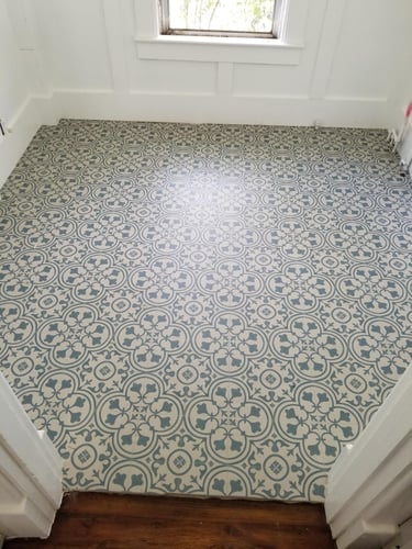 We moved the refrigerator to the area where the old water heater closet had been. We removed the cabinet drawer section to the right of the sink and put in a dishwasher. Under the old linoleum, original hard wood floors, not perfect, restored!